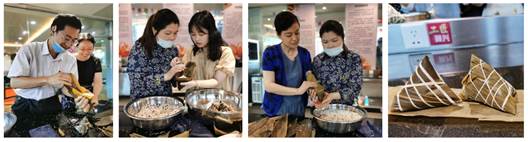 为迎接端午节,感受传统文化,放松教职工身心,食品学院分工会于6月19日在江南大学国家大学科技园-中粮金焙工匠复兴烘焙职业学校开展了“迎端午•裹粽子”活动。