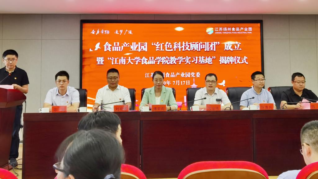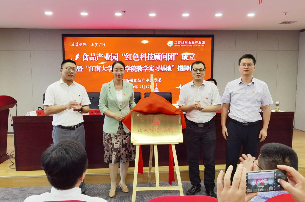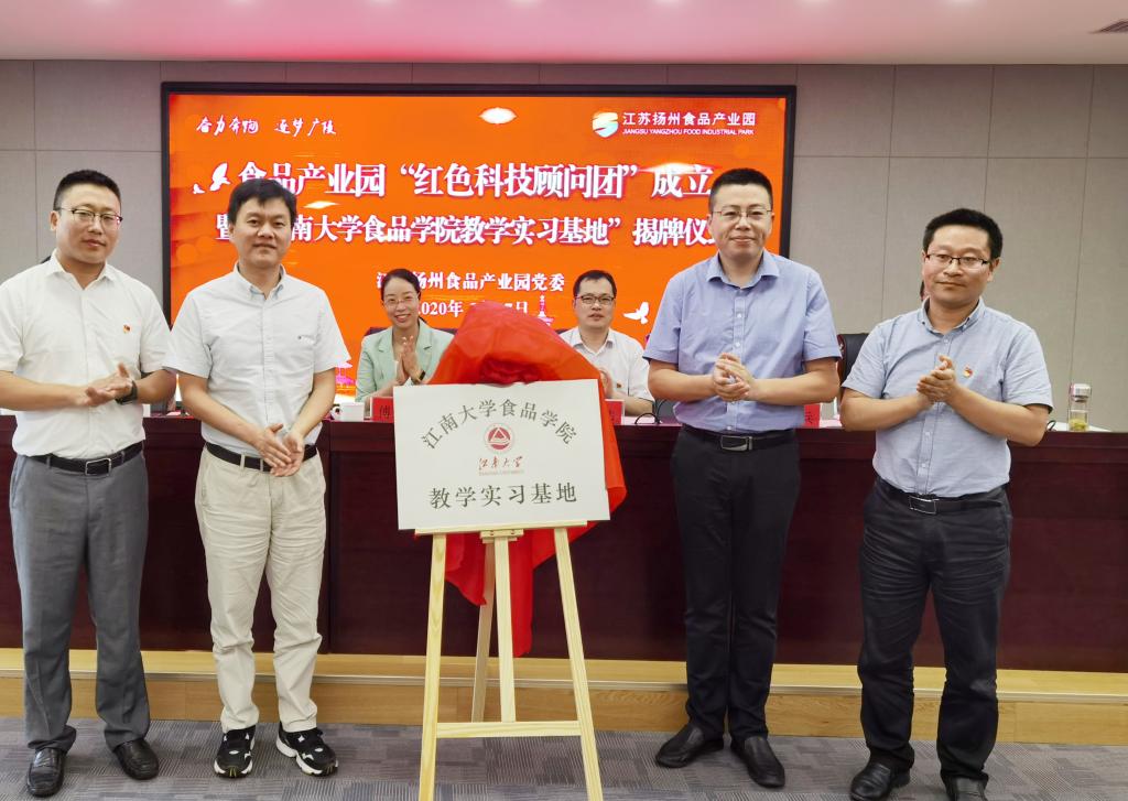 为进一步发挥高校科技服务功能,加快促进产学研相互转化,7月17日上午,在中国共产党成立99周年之际,bat365在线官方网站与扬州食品产业园举办“红色科技顾问团”成立暨“bat365在线官方网站教学实习基地”揭牌仪式。