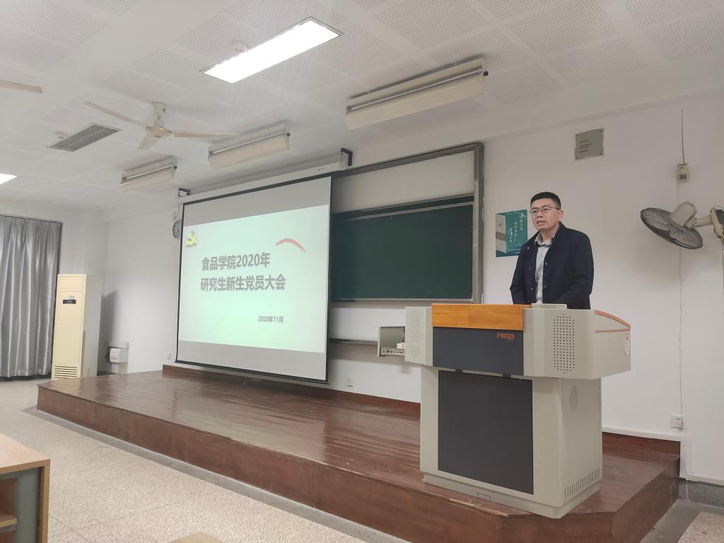 近日,食品学院2020级研究生新生党员大会在第二教学楼2A127顺利举行。食品学院党委副书记魏珍吉、辅导员张瑶瑶、杨光宝及全体研究生新生党员参加了会议。