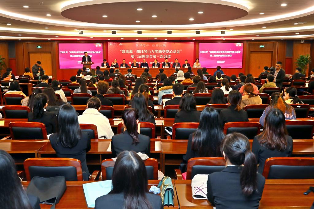 11月26日下午,由bat365在线官方网站食品学院首任院长姚惠源、胡珏琴伉俪发起成立的“姚惠源胡珏琴百万奖助学爱心基金”第二届理事会第三次会议暨“汇聚爱心力量,培育一流人才”研讨会在图书馆五楼报告厅隆重举行。江南大学副校长顾正彪教授,食品学院首任院长、爱心基金发起人姚惠源教授,基金会理事,江南大学社会资源处处长黄敏以及食品学院师生代表出席大会。会议由食品学院党委副书记魏珍吉主持。