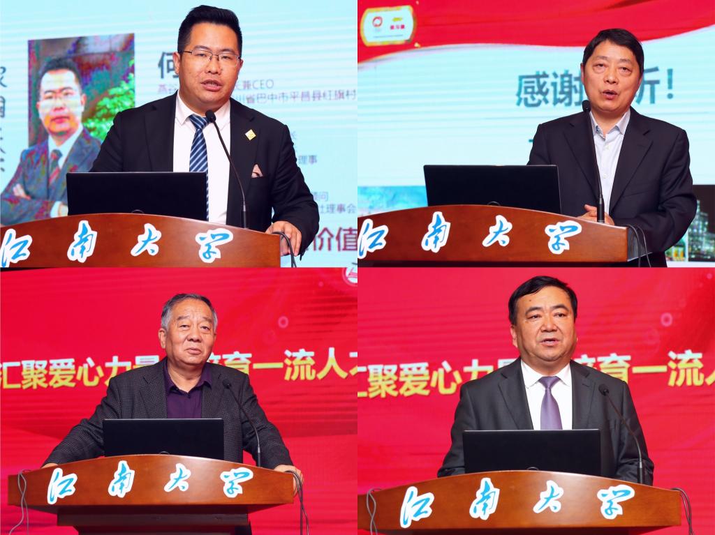 随后,“汇聚爱心力量,培育一流人才”研讨会正式进行。内蒙古燕谷坊生态农业发展(集团)有限公司董事长何均国、益海嘉里全球研发中心总监徐学兵、内蒙古恒丰食品工业(集团)股份有限公司董事长魏建功、上海海融食品科技有限公司总经理黄海瑚、宁夏塞外香食品有限公司董事长胡学文等五位理事分别作主题研讨,他们结合自身成长、求学经历,围绕企业发展情况,深入、全面地分析了食品学科与行业的发展前景,他们劝诫同学们要努力学习、不断创新,坚守食品行业,为实现食品强国梦积极贡献。