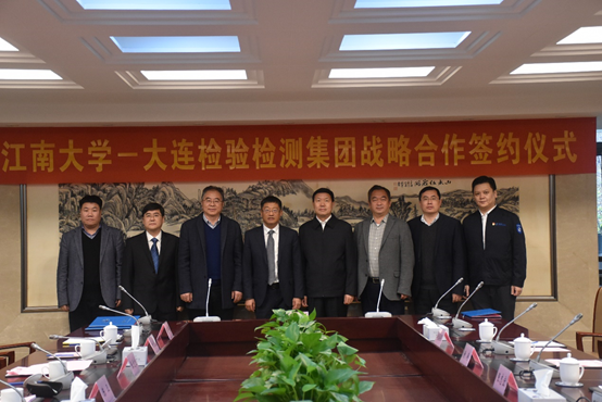 11月27日,大连市检验检测集团有限公司与江南大学战略合作协议签字仪式在bat365在线官方网站行政楼B305会议室举行。大连市人民政府副市长张志宏,中国工程院院士、江南大学校长陈卫,大连检验检测集团党委书记兼董事长李强,校产业技术研究院院长刘龙,食品学院院长刘元法,国家功能食品工程技术研究中心副主任/食品学院食品质量与安全研究中心主任王周平,大连检验检测集团食品研究院负责人谢涛等专家及领导共同出席签约仪式,会议由校长助理、宜兴江阴校区建设与管理委员会常务副主任张光生主持。