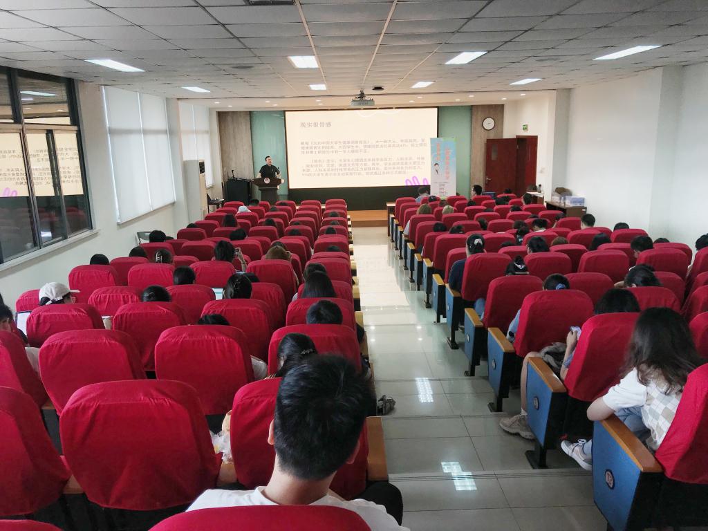 活动伊始,田霖博士与师生进行互动,分析了心理委员的职责以及大学生的现状。接着,田霖博士讲述了心理健康的概念,即能善待自己、及时调解情绪、不钻牛角尖等,进一步讲述了大学生心理健康的表现:智力正常、情绪稳定、意志健全、人格完整、自我评价正确、人际关系和谐等,但现实是大部分大学生都经受着学业、就业、人际关系等多方面的困扰。随后,田霖博士分享了心理调适的方法,正确看待焦虑,合理安排生活,运用手指按摩法、冥想和呼吸训练等方式有效调节情绪,还在现场演示了吹泡泡呼吸法。最后,田霖博士表达了对同学们的美好希望与祝愿,祝福同学们度过美好的大学时光,养成健康和谐的心理状态。