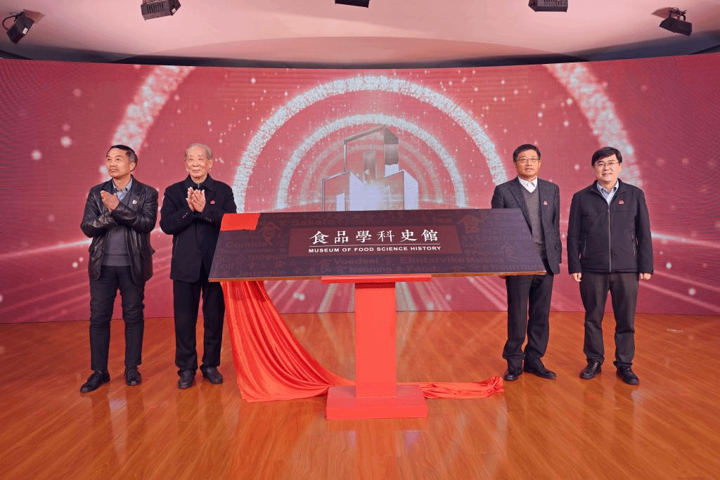 随后,食品学院历任院长姚惠源教授、金征宇教授、陈卫院士、刘元法教授上台,共同为江南大学食品学科史馆揭牌。