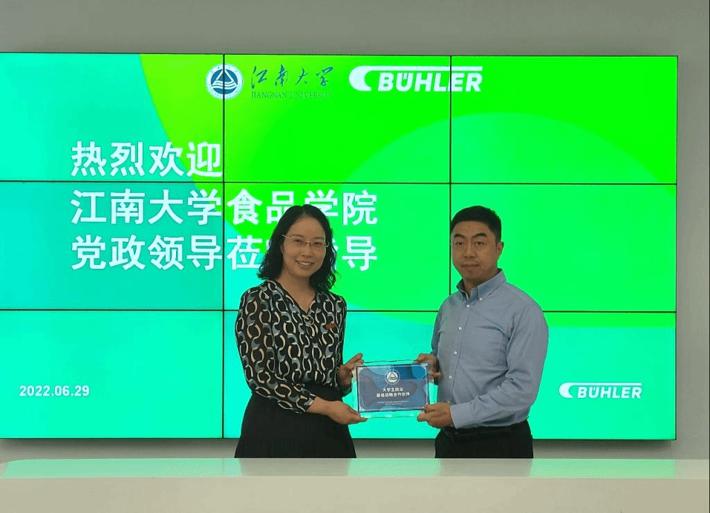 傅莉莉分别为安井、布勒两家优质企业颁授“江南大学就业最佳战略合作伙伴”铭牌,以表彰其为学校、学院人才培养和就业服务等工作做出的卓越贡献。