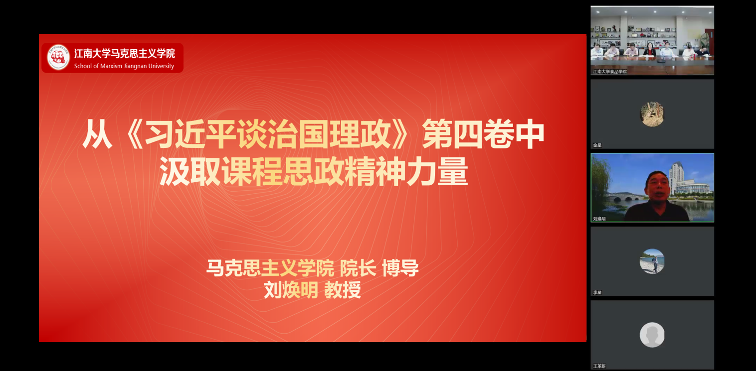 9月15日食品学院邀请马克思主义学院院长刘焕明教授,给全体教职工带来题为《从<习近平谈治国理政>第四卷中汲取课程思政精神力量》的学习报告。