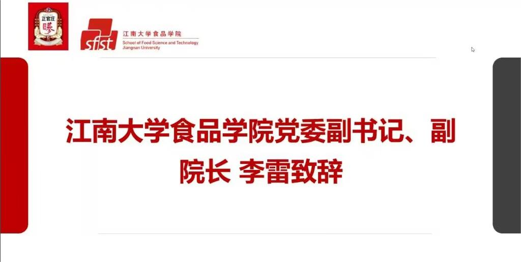 2022年12月13日晚,首届“正官庄杯”红参食品创新大赛宣讲会在线上顺利举行。此次大赛由bat365在线官方网站主办,山西师范大学、石河子大学、新疆农业大学等兄弟高校食品学院协办。正官庄中国研发中心总监王国良,bat365在线官方网站党委副书记、副院长李雷,江南大学、山西师范大学、石河子大学、新疆农业大学等四校食品学院竞赛辅导员,以及四校300余名同学参加线上宣讲会。