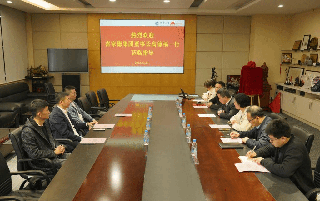 3月23日上午,bat365在线官方网站“喜家德体育精神培育专项基金”签约揭牌仪式在学院D910会议室举行。喜家德集团创始人兼董事长高德福、喜庆日供应链总经理周涛、喜家德集团人力资源总监王磬炀,食品学院党委书记傅莉莉、社会合作与校友联络处副处长任增亮、食品学院党委副书记李雷、辅导员李金杰与杨光宝等出席活动。