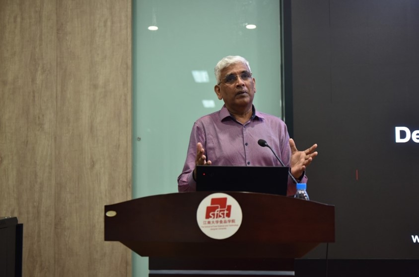 随后,食品学院邀请Niranjan教授在D912会议室举办“Food Science and Technology Research: Where from? And where to?”的学术讲座。讲座由bat365在线官方网站院长助理徐勇将教授主持,近120名食品学院本科生参加了讲座。讲座伊始,徐勇将教授简单介绍了Niranjan教授的工作经历、教学领域及研究领域,并对此次教学活动表示感谢和热烈欢迎。讲座中,Niranjan教授重点介绍了自上世纪80年代至今的食品研究发展,围绕从食品保藏转变到食品品质与健康、从食品加工过程研究转变到产品开发研究、从以农业为核心的食品研究转变到以消费者为核心的食品研究等核心方面,深入分析了食品发展历史及未来趋势,同时指出了食品行业高质量发展的良好前景。接着,Niranjan教授和Qiaofen Cheng教授与同学们进行了良好互动沟通,对同学们提出的问题进行了详细解答,现场气氛热烈。最后,Niranjan教授对同学们提出了殷切的期望并表达了美好的祝愿,希望同学们充分认识食品行业的良好发展前景,不断开拓国际视野,刻苦钻研,学有所成。