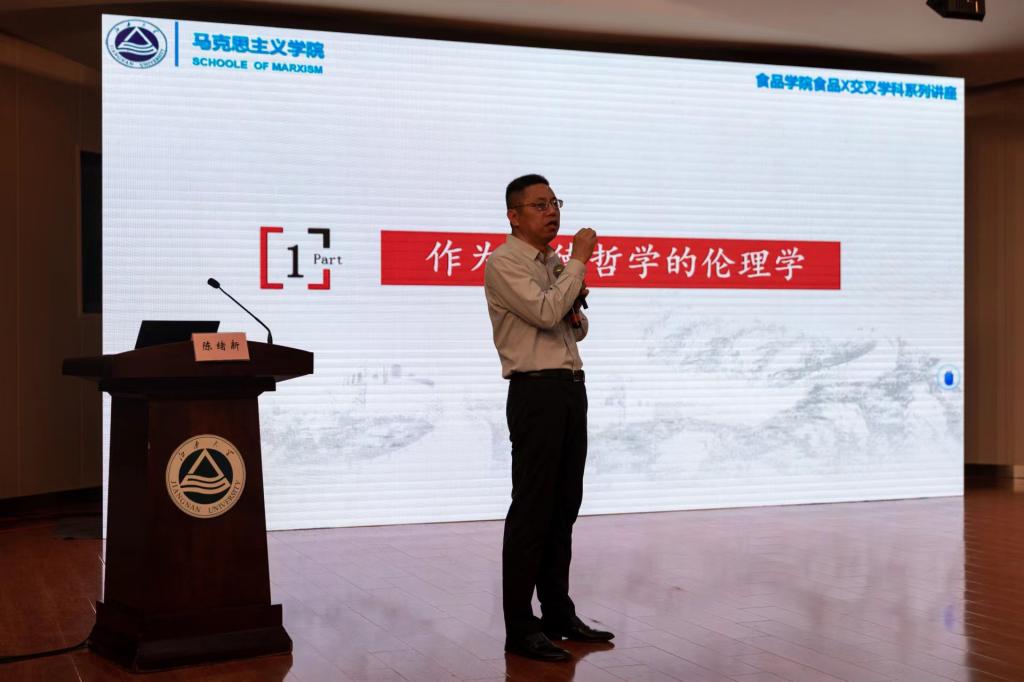 4月11日下午,“食品X”交叉学科系列讲座在北区大学生活动中心再次开讲。本次活动邀请到马克思主义学院博士生导师陈绪新教授作题为《民以食为天,食以安为先——实现食品工程伦理与新时代工匠精神的深度耦合》的报告。食品学院党委副书记、副院长李雷,分团委副书记李琳及380余名食品学子参加活动。2020级本科生辅导员王文燕担任主持。