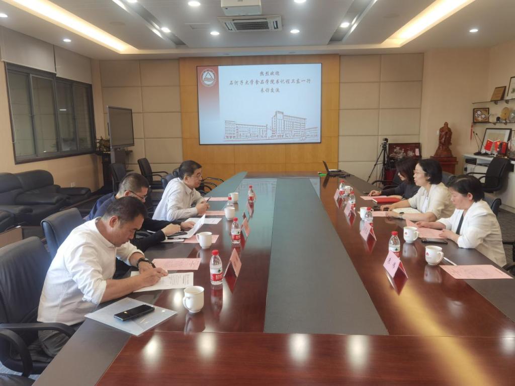 10月17日下午,石河子大学食品学院党委书记程卫东、副院长单春会来访我院。我院党委书记傅莉莉、副院长孙秀兰等参与座谈。