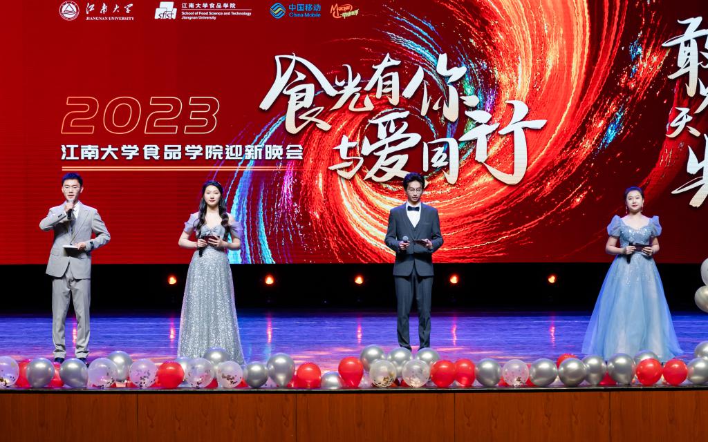 12月21日晚,由食品学院分团委举办,学生会、研究生会承办,中国移动无锡分公司、陈克明食品股份有限公司友情支持的2023年“食光有你,与爱同行”迎新晚会在文浩馆观众厅精彩上演。学校党委办公室副主任代卉、国际教育学院党总支副书记王胤;食品学院党委书记傅莉莉,院长范大明,副书记李雷,副院长谢云飞、程力;全体辅导员、新生班主任、党政管理干部及千余名食品学子出席活动,共享这场视听盛宴。