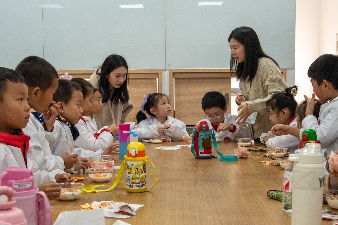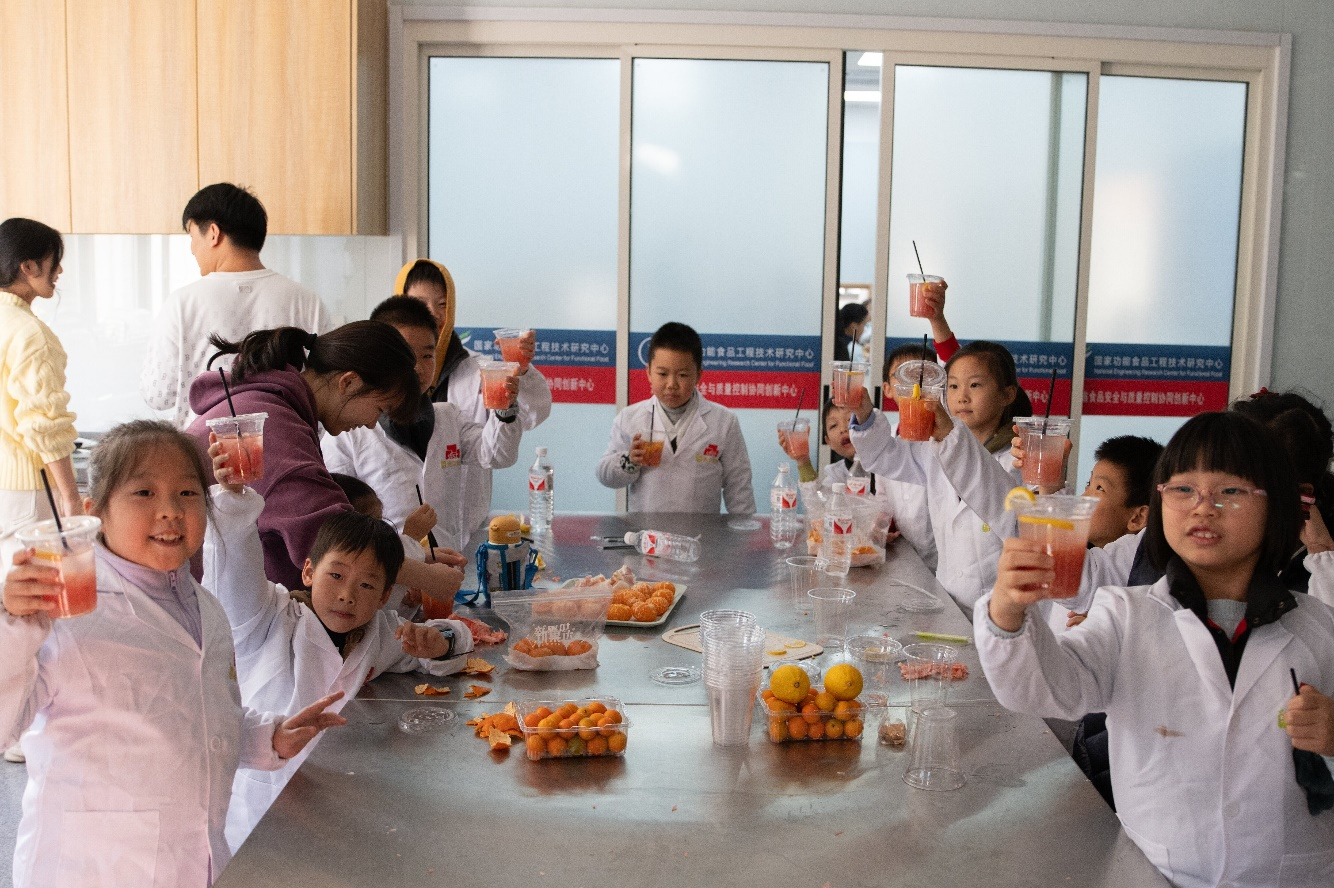 为帮助“江小娃”树立正确饮食观念,培养动手实践能力,食品学院分工会在校工会的支持下,与青芽食育大学生科普社团联合打造“关爱江小娃——‘食’趣科普实践工坊”系列活动,计划每月开展1期,一年12期。今年11月,首期活动“大柚作为——探秘柑橘类水果背后的故事”在我院食品工坊顺利举。青芽食育团队通过普及柚子及其所属柑橘类水果中的食品科学知识,指导小朋友制作柚子创意美食,为“江小娃”带来了一场兼具科学、创意与趣味的“食”趣盛宴。