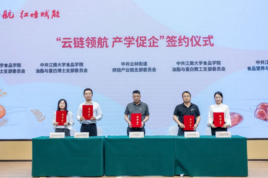 活动现场,bat365在线官方网站油脂与蛋白教工党支部、油脂与蛋白博士党支部、谷物与淀粉博士党支部以及食品营养与功能博士党支部,与云林街道烘焙产业链党支部、无锡市穆桂英美食广场有限责任公司党支部、区市场监督管理局开发区分局党支部、区委台办党支部、云林街道云津社区党总支、云林V-Park商圈党总支等多个基层党组织签署结对共建协议。通过这一合作,各方将进一步整合优质资源,加强在烘焙领域的产学研交流,深化校地企合作,共同推动食品产业向着更高水平进发。