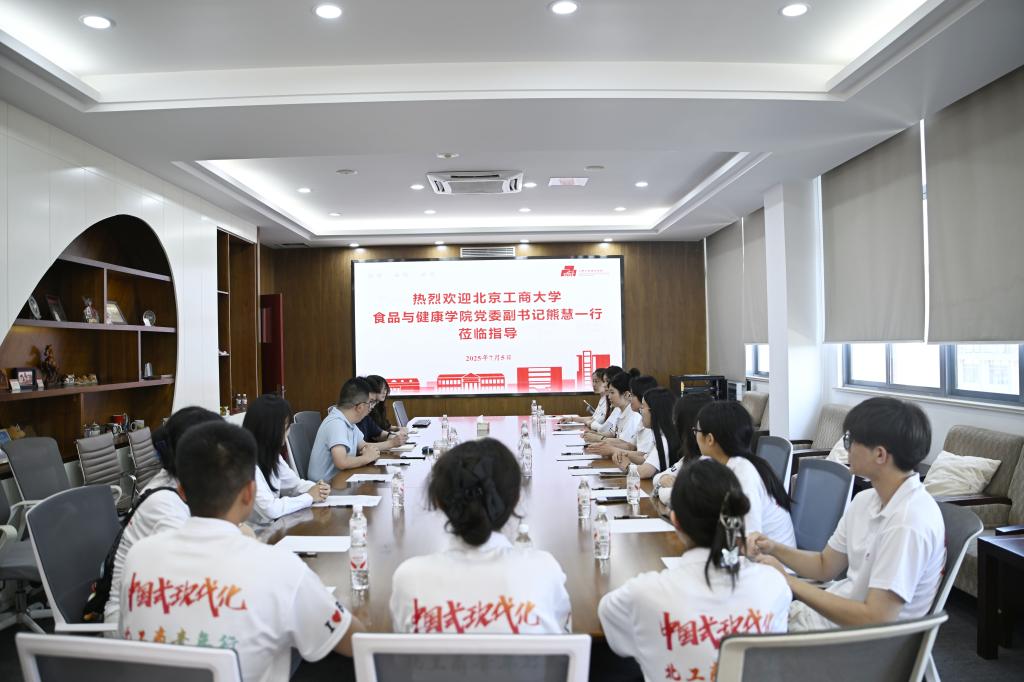 7月5日下午,北京工商大学食品与健康学院党委副书记熊慧等一行13人来访bat365在线官方网站食品学院。bat365在线官方网站食品学院党委副书记兼副院长李雷、学工办主任兼分团委书记李金杰等接待来访。