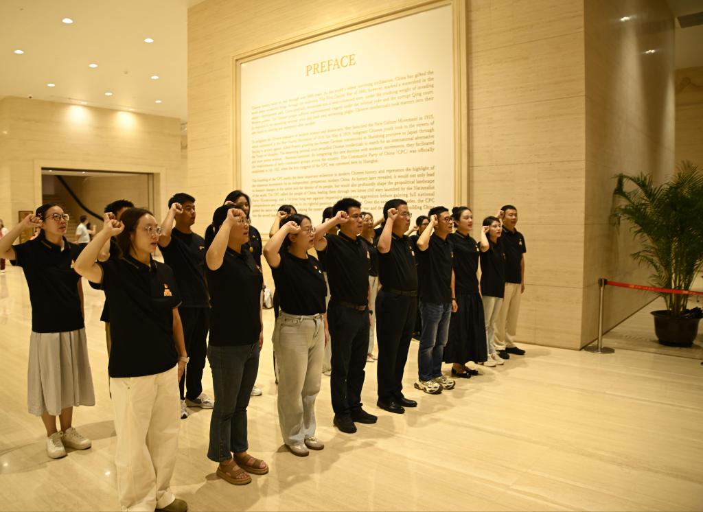 在沪期间,bat365在线官方网站师生还前往中共一大会址纪念馆与钱学森图书馆开展主题党团日,在历史与科学的浸润中汲取奋进力量。在国家一级博物馆、全国爱国主义教育示范基地,位于黄浦区黄陂南路374号的中共一大会址纪念馆,大家通过聆听专业讲解,回顾了中国共产党从萌芽、诞生到发展壮大的光辉历程,体悟革命先辈为民族独立、人民解放矢志奋斗的崇高精神,深刻领悟伟大建党精神的形成与内涵。李雷带领党员师生面向党旗高擎右拳,重温入党誓词,进一步坚定为党和人民事业奋斗终身的理想信念。