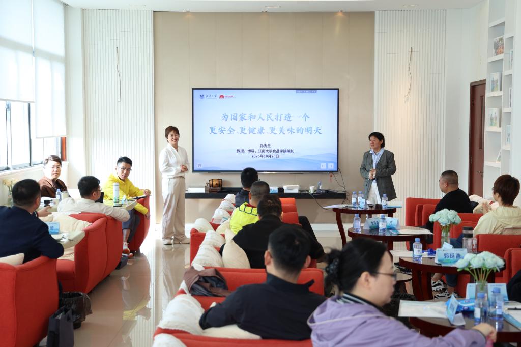 10月25日的课程聚焦江南大学科研积累与产业融合。孙秀兰立足行业发展全局,系统阐述企业责任与未来发展方向,并与学员就学习需求进行了深入交流;朱科学结合学校在面制食品领域的深厚研究,解析科技驱动产业升级的路径;赵伟围绕低GI(血糖生成指数)的形成机制及功能组分展开专业剖析;陈洁就植物基蛋白结构重组技术进行系统讲解;翟齐啸深入探讨了益生菌与肠道菌群的挖掘应用,指出前沿技术对功能开发的推动作用;陈志远参与的食药同源专题研讨,进一步推动了科研资源与企业产品开发的有效对接。