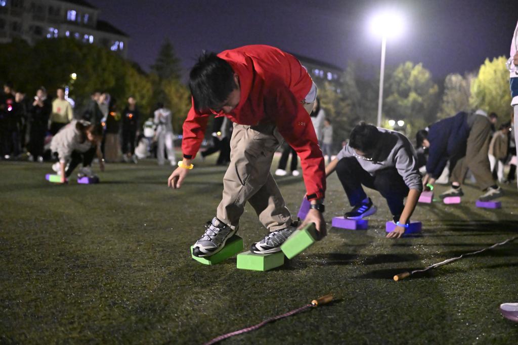 趣味运动环节更是将现场气氛推向高潮。“摸石过河”中,师生默契配合,在方寸之间展现协作智慧;“四人五足”里,大家统一步调、齐头并进,在同步前行中凝聚团队合力;跳绳现场,绳影翻飞、人影穿梭,每一次成功起跳都伴随着阵阵喝彩。精彩纷呈的趣味项目与跑道上的竞技身影相互映衬,动静之间皆显青春活力,共同勾勒出操场上跃动奋进的最美风景线。
