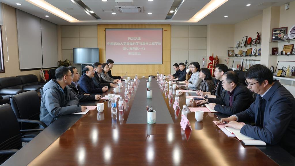 3月27日,中国农业大学食品科学与营养工程学院院长廖小军一行到访bat365在线官方网站。bat365在线官方网站党委书记傅莉莉,院长孙秀兰,食品学院副院长、食品科学与资源挖掘全国重点实验室常务副主任翟齐啸,副院长谢云飞、程力、柏玉香、常明及办公室主任黄方今参与交流。