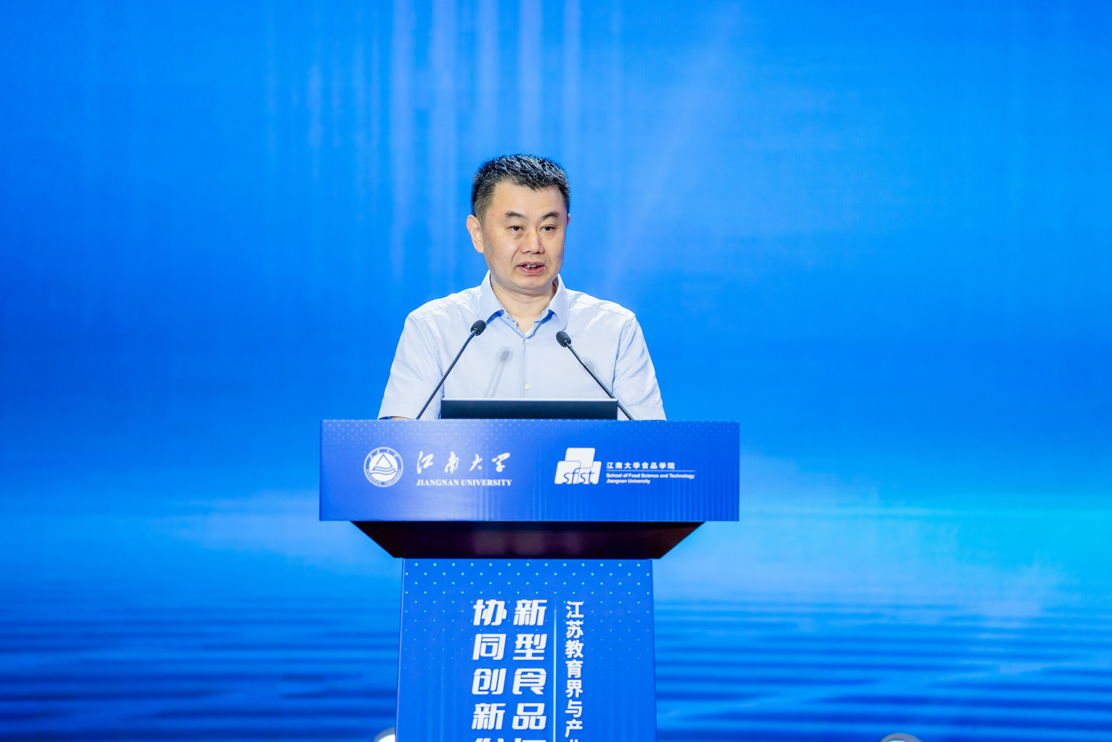 陈卫首先致欢迎辞。他指出,本次大会是贯彻落实习近平总书记“大食物观”和健康中国战略的重大响应,是顺应新型食品与大健康产业协同发展与科技创新诉求的“及时雨”。江南大学愿同产业领域的高校、企业同仁们一道,共同发挥食品科学在大健康时代的引领强化作用、共谋新型食品前沿科技创新、共享食品行业发展红利、共促健康中国建设落地。