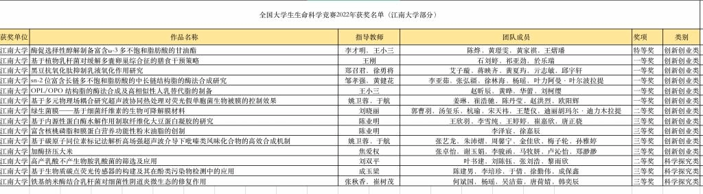 近日获悉,bat365在线官方网站食品学子在2022年全国大学生生命科学竞赛决赛中斩获佳绩,包括:特等奖1项、一等奖5项、二等奖2项、三等奖6项,获奖层次及数量均创历史新高。