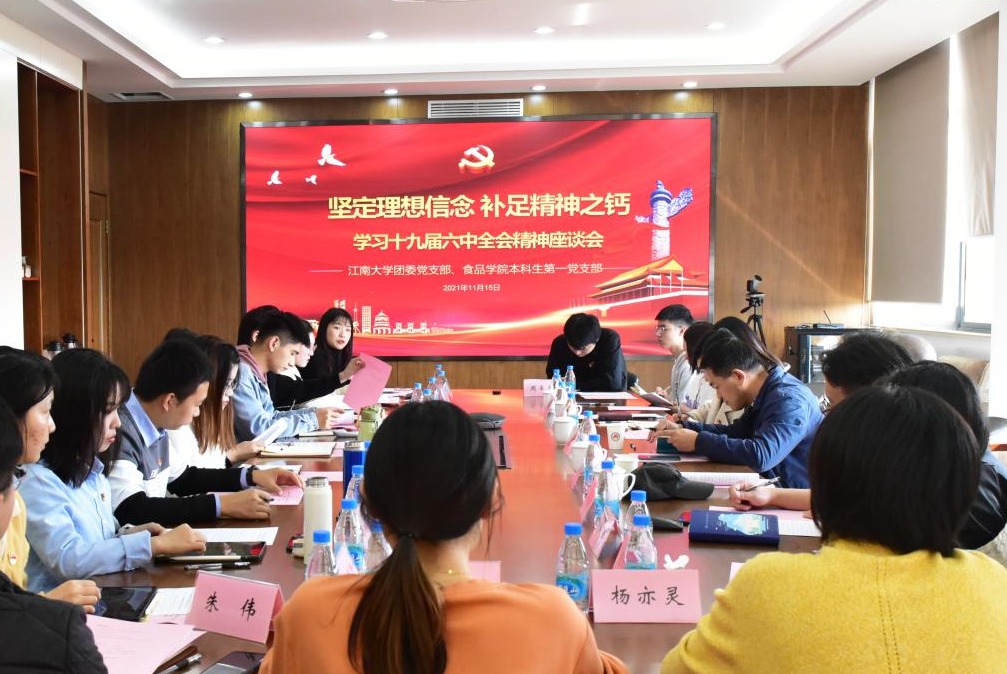 为深入学习贯彻党的十九届六中全会精神,11月15日,校团委党支部与食品学院本科生第一党支部在食品楼D925开展了“坚定理想信念,补足精神之钙”为主题的党日活动,两个支部的党员同志参加了活动。