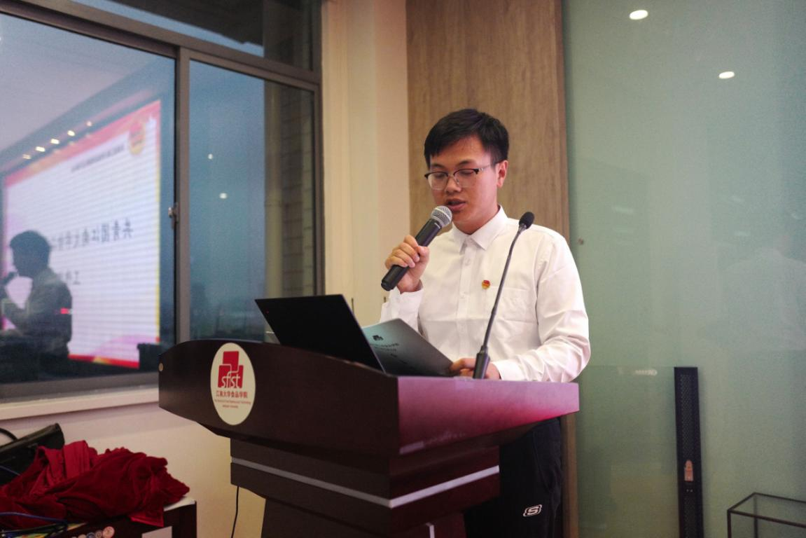 大会在嘹亮的国歌声中正式拉开帷幕。孔祥年代表校团委致辞,他首先肯定了食品学院分团委在思想组织建设、科技创新等方面取得的卓越成效,强调食品学院分团委要继续引导团员青年深入学习贯彻习近平新时代中国特色社会主义思想,找准团学组织在学校“大思政”工作格局下的组织定位和作为空间,切实加强团的自身建设,着力打造政治过硬、作风优良、纪律性强的团干部队伍。