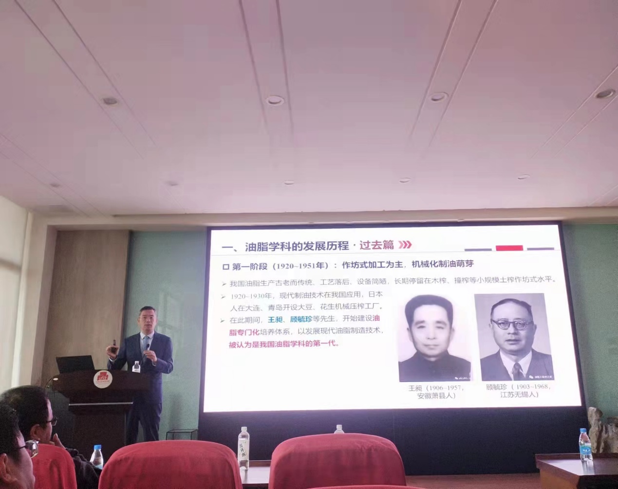 11月20日上午,bat365在线官方网站油脂与植物蛋白研究中心王兴国教授为我院师生作“江南大学油脂学科的过去、现在和未来”报告,学院百余名师生聆听讲座。