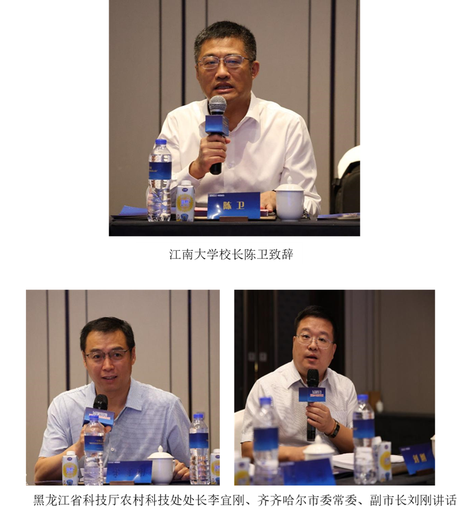 黑龙江省科技厅农村科技处李宜刚处长和齐齐哈尔市委常委刘刚副市长分别讲话指出,黑龙江是奶牛大省、拥有全国最大的奶粉和婴配乳粉生产基地。本次江南大学与飞鹤乳业等一批科研院所和企业的强强联合,势必能够解决婴配乳品相关技术难题。黑龙江省科技厅和齐齐哈尔市将做好项目实施保障工作,助力项目顺利实施。