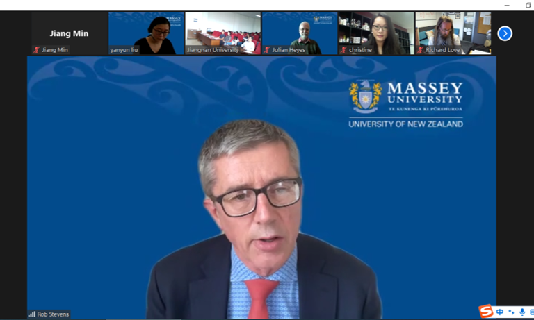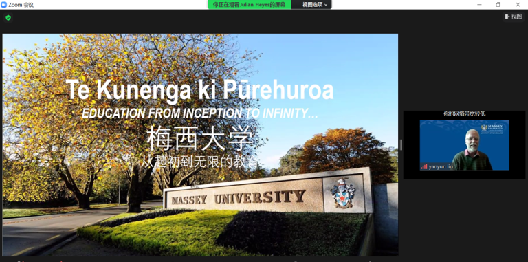 梅西大学Rob Stevens先生首先致辞,他高度评价了江南大学和梅西大学联合办学项目的合作质量和成效;Julian Heyes教授介绍了梅西大学优美的校园环境、办学条件、教育理念、校园文化、大学生活以及学生们的学习方式,并欢迎新生2025年到新西兰梅西大学学习和生活;Richard Love博士线上给同学们简要讲述了项目的发展历程,特别是针对同学们的学习提出了期许和建议。