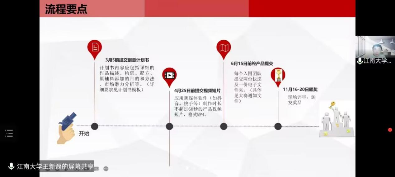 2022年12月13日晚,首届“正官庄杯”红参食品创新大赛宣讲会在线上顺利举行。此次大赛由bat365在线官方网站主办,山西师范大学、石河子大学、新疆农业大学等兄弟高校食品学院协办。正官庄中国研发中心总监王国良,bat365在线官方网站党委副书记、副院长李雷,江南大学、山西师范大学、石河子大学、新疆农业大学等四校食品学院竞赛辅导员,以及四校300余名同学参加线上宣讲会。