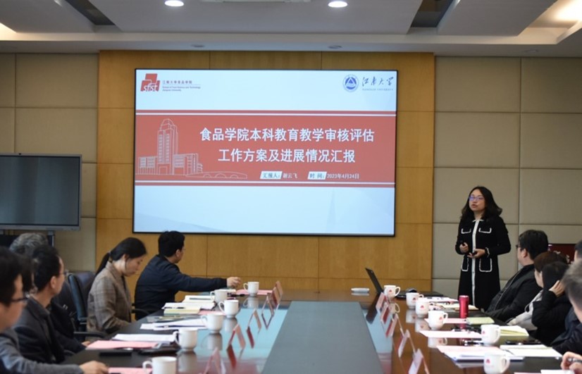 谢云飞副院长从工作机构、任务分工、工作进度安排、问题建议四个方面对食品学院的审核评估工作方案及工作进展进行了汇报。她表示,食品学院按照江南大学审核评估实施方案和指标体系内涵解释,制定了具体的工作方案和任务分解表,并成立了以学院党委书记、院长为组长的审核评估领导小组和各项工作小组,明确了各项工作的负责人和工作进度安排。同时,针对本科教育教学审核评估工作,谢云飞副院长表示,将以本科教育教学评估为抓手,找问题、想办法、促发展,全面梳理本科教育教学重点工作,将基层教学组织建设、教学水平提升、实习实践能力提升、教学保障体系建设等工作相结合,在准备过程中同时进行建设,推动本科教学内涵高质量发展。