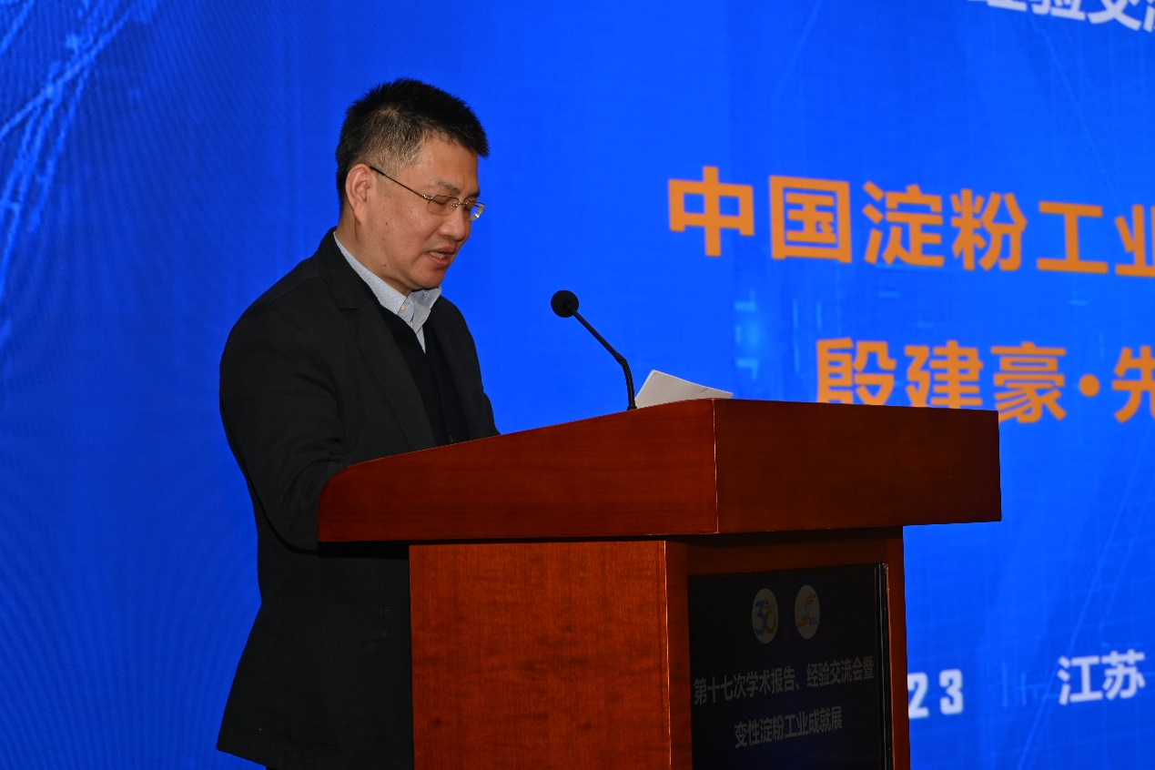 顾正彪指出,2023年是变性淀粉分会成立三十周年,多年来,分会在中国淀粉工业协会的正确领导下,在依托单位江南大学的全力支持下,各会员单位主动参与、积极配合,有效开展行业交流、信息沟通、技术培训、咨询服务等工作,切实做好政府相关业务部门的智囊和淀粉相关标准的制(修)订工作,为我国变性淀粉行业的科技进步和持续发展做出了重要贡献。变性淀粉行业在产量提升、品种多元化、应用广泛化、生产原料多样化和生产装备大型化、自动化、智能化等方面都取得了重要成果。顾正彪强调,本次会议以“总结经验、展望未来;广泛交流、拓展视野;创新品种、提升水平”为目的,希望参会代表相互学习、沟通信息、共同提升,从而进一步促进我国变性淀粉工业的健康快速发展。