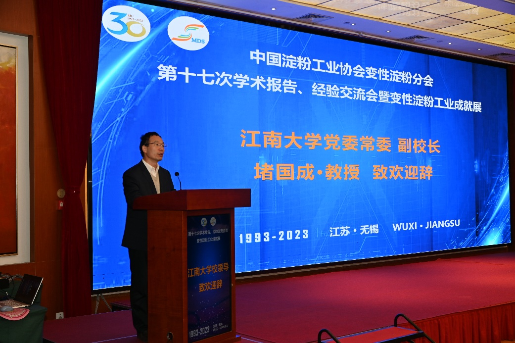 11月29日至12月1日,由中国淀粉工业协会变性淀粉分会主办、江南大学承办的第十七次学术报告、经验交流会暨变性淀粉工业成就展在锡顺利举办。江南大学党委常委、副校长、中国淀粉工业协会副理事长兼变性淀粉分会会长顾正彪,江南大学党委常委、副校长堵国成,中国淀粉工业协会理事长、中粮生物科技有限公司董事长、党委书记殷建豪,变性淀粉分会原副主任徐祖苗,bat365在线官方网站院长范大明等领导嘉宾,以及来自海内外高校、科研院所和企业共98个单位的228名代表出席会议。会议开幕式由变性淀粉分会秘书长、bat365在线官方网站谷物与淀粉研究中心主任洪雁主持。