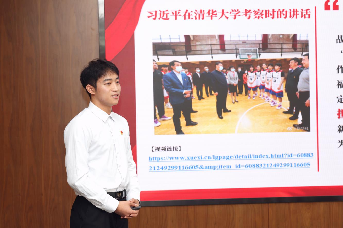 党支部组织委员、食科2004班本科生应迪琛领学习近平总书记的“青年观”。他从学习背景、重要论述、未来展望等三个方面带领在座师生认真学习了习近平总书记关于青年和青年工作的一系列重要讲话精神,希望同学们都能不负总书记的殷殷嘱托,成为有理想、敢担当、能吃苦、肯奋斗的新时代好青年。