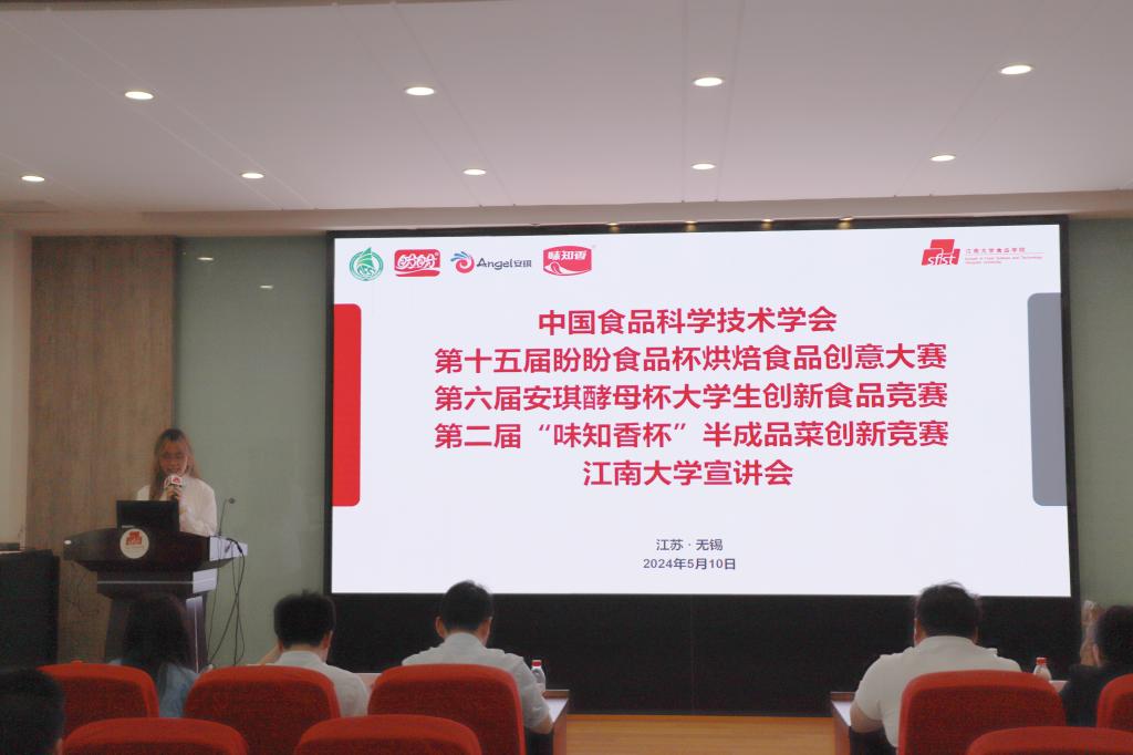近日,第十五届“盼盼食品杯”烘培创意大赛、第六届“安琪酵母杯”大学生创新食品竞赛、第二届“味知香杯”半成品菜创新竞赛宣讲会在江南大学顺利举办。盼盼食品集团无锡区域经理刁益萍、区域主管董书芹,安琪酵母股份有限公司工程师陈颖雷、人力资源部招聘主管雷鸣,苏州市味知香食品股份有限公司招聘经理操洪涛,中国食品科学技术学会益生菌分会副秘书长、bat365在线官方网站食品学院副院长翟齐啸,食品学院学工办主任、分团委书记李金杰,竞赛秘书叶舒迪等师生参与活动。