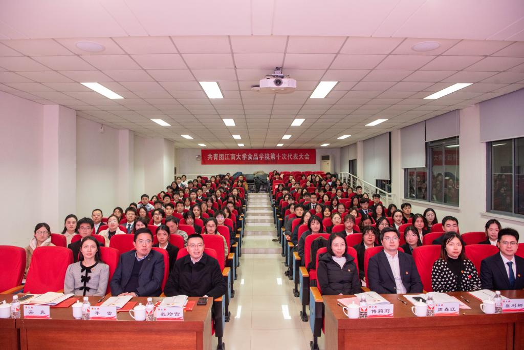 魏珍吉代表学校团委对大会召开表示热烈祝贺。他充分肯定食品学院团学工作在思想引领、组织建设、学生竞赛、社会实践、志愿服务、文体活动等方面的育人成效,并强调,学院共青团须准确把握青年工作的规律和特点,回答好新时代青年培养这一课题,团结带领全院青年不忘初心、与党同行、向下扎根、向上生长,做改革大潮中奋楫前行的江南人。
