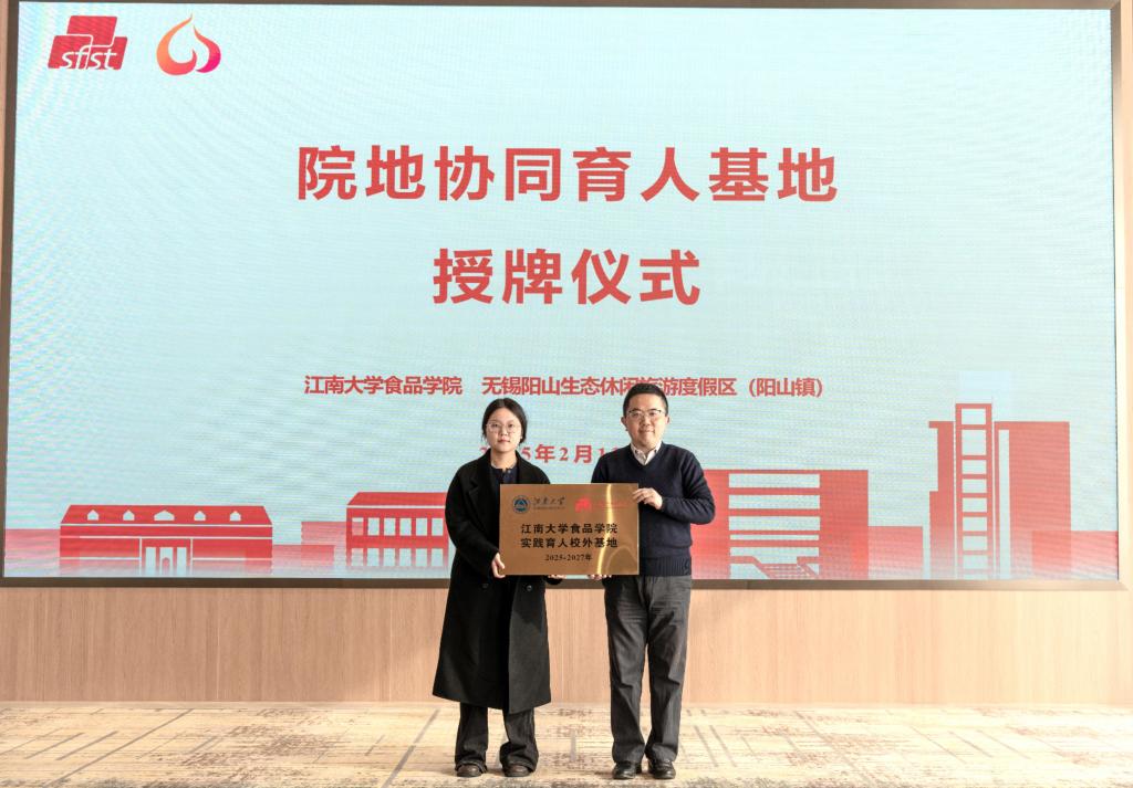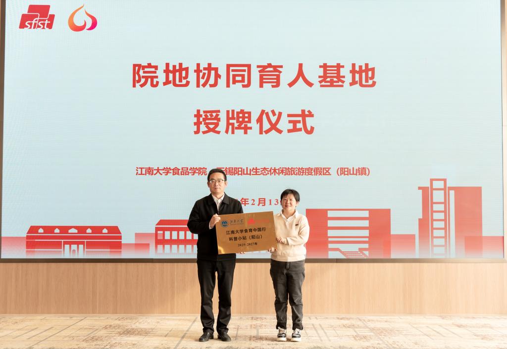 为进一步推动教育链、人才链、产业链、创新链有机融合,2月13日上午,bat365在线官方网站与度假区(阳山镇)在无锡院士小镇举办院地共建活动。校党委学生工作部部长周伟涛,食品学院党委书记傅莉莉、院长孙秀兰、党委副书记兼副院长李雷、副院长商飞飞及全体辅导员和部分教师代表;阳山旅游度假区党工委书记、管理办公室主任、镇党委书记许彤亮,副镇长周澎菲,镇党委组织委员姚榕及相关部门负责人出席活动。仪式由周澎菲主持。