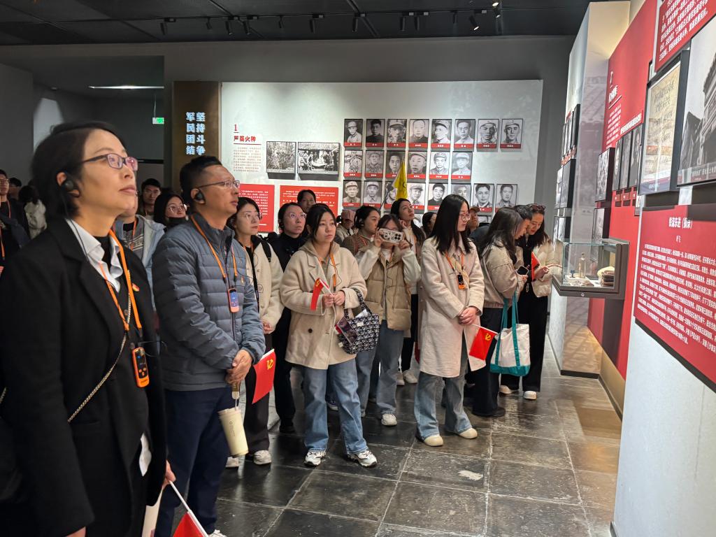 活动当天,全体党员循着革命先辈的足迹,在讲解员的引导下走进沙家浜革命历史纪念馆。馆内丰富的历史图片、珍贵的革命文物、生动的场景复原,再现了抗日战争时期新四军和沙家浜群众凭借芦苇荡的天然优势,开展游击战争、保家卫国的峥嵘岁月。不少党员驻足凝视,轻声交流,沉浸式接受精神洗礼。从“芦荡火种”的孕育到“鱼水情深”的传承,从艰苦卓绝的战斗历程到革命精神的当代延续,党员同志们深刻感受到革命先辈坚定的理想信念与无私的奉献精神。