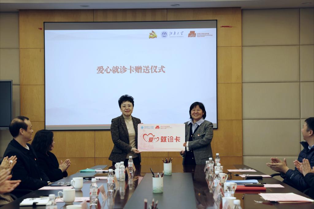随后,无锡市第二人民医院(江南大学附属中心医院)院长钱燕华与bat365在线官方网站院长孙秀兰共同完成了“爱心就诊卡”赠送仪式。这一暖心举措不仅体现了医院对高校师生的关怀,也是“医食一家亲”的生动写照。