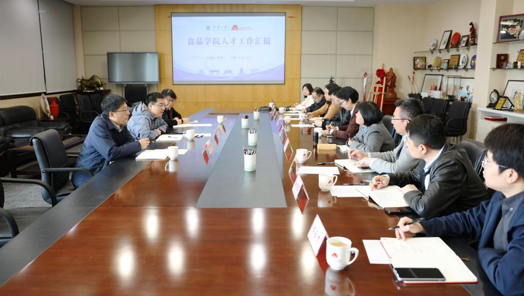 4月1日上午,bat365在线官方网站副校长金科、人才工作办公室副主任兼院士工作办公室主任苏晓晋、人力资源处副处长康振赴食品学院,就人才工作进行调研指导。食品学院党委书记傅莉莉,院长孙秀兰,食品科学与资源挖掘全国重点实验室常务副主任、副院长翟齐啸,党委副书记兼副院长马素伟,副院长谢云飞、程力、柏玉香等参与座谈。