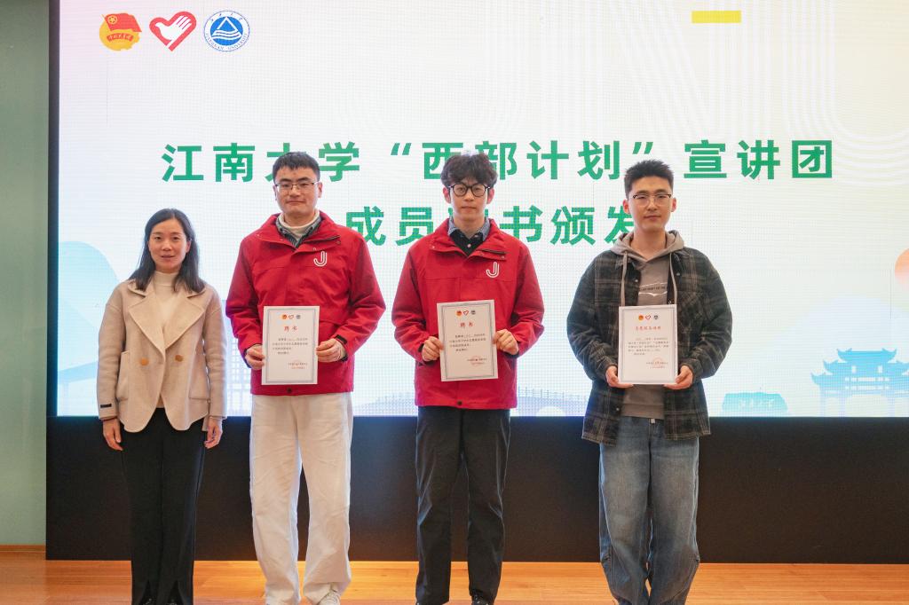 随后,现场举行江南大学西部计划宣讲团成员聘书颁发仪式,进一步壮大宣讲队伍力量。活动最后设置问答交流环节,同学们围绕西部计划报名条件、服务内容及发展路径等踊跃提问,现场气氛热烈。