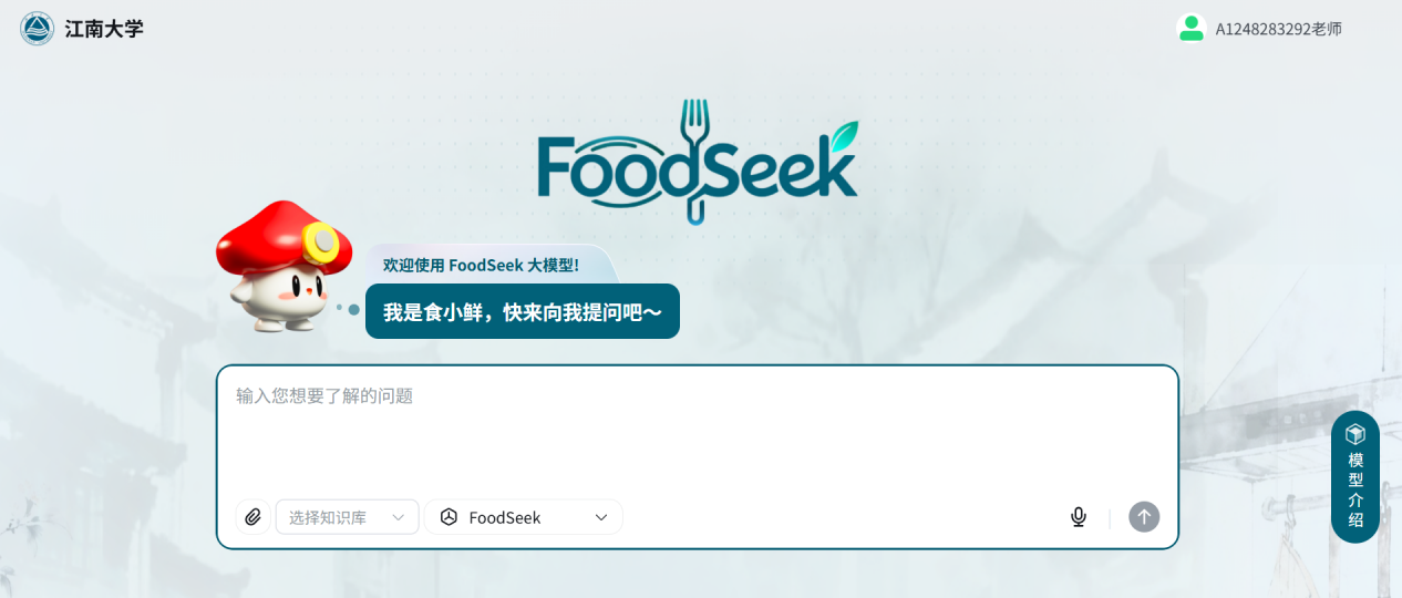 2025年初,学校启动食品学科大模型基座研发,建成食品学科全谱系高质量语料库,完成核心技术攻关与多轮论证评审。2025年7月4日,江南大学正式发布FoodSeek大模型1.0版本,围绕教学—科研—科普—行业服务四大场景,上线食品安全标准问答、营养素查询、科研助手、食品AI辅导员四大智能体,具备专业信息抽取、精准推理、智能解析等核心能力,填补食品领域专用大模型空白。2025年下半年,FoodSeek大模型深度融入国家智慧教育平台研究生教育板块建设,为食品学科研究生提供智能教学辅助、科研创新支持、优质资源供给,助力平台资源提质与功能升级。2025年12月,江南大学FoodSeeker智食社成立,面向食品、人工智能等相关学科学生招募成员,吸纳师生骨干参与,聚焦大模型技术科普、应用实践及场景探索,搭建学生参与科研实践、交流学习的一体化平台,进一步完善FoodSeek大模型生态布局,助力学生将食品专业知识与AI技术结合,提升实践创新能力。2026年1月,教育部学位与研究生教育发展中心致信致谢,认可FoodSeek大模型在国家教育数字化战略中的实践价值与示范意义,学校“AI+学科”融合育人再获国家级肯定。2026年1月下旬,江南大学严格遵照国家《生成式人工智能服务管理暂行办法》等法规要求,向网信办提交备案材料,积极推进FoodSeek大模型合规备案工作,为后续模型规范化应用、服务能力拓展及成果落地提供坚实支撑。2026年3月,FoodSeek大模型2.0版本已成功上线并实现本地化与混合式双平台部署。进一步提升了模型运行的稳定性、安全性与服务响应能力,为大模型的深度应用提供了有力保障。2026年4月,江南大学召开FoodSeek(食问)大模型2.0版本研讨会,会议围绕食品学科大模型的建设进展、技术优化、应用成效及未来方向进行了深入交流,进一步凝聚了校内外专家共识,为推动模型迭代升级奠定了坚实基础。
