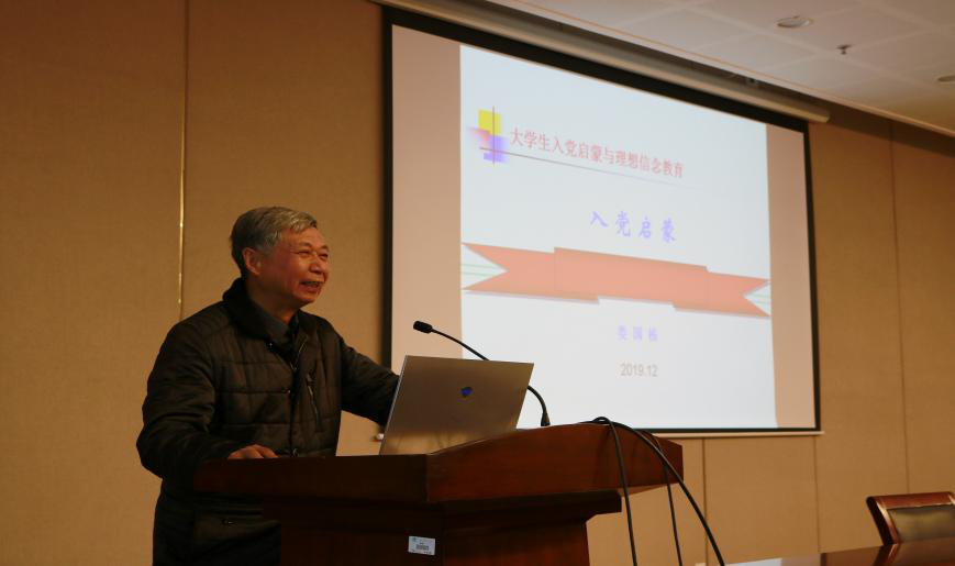 12月4日下午,食品学院2019级本科生入党启蒙教育活动在图书馆三楼报告厅顺利举行。此次活动邀请到江南大学关工委常务副主任娄国栋主讲,食品学院党委副书记张文主持报告会,2019级全体同学聆听了报告会。